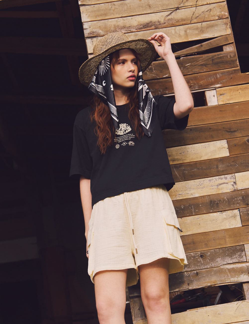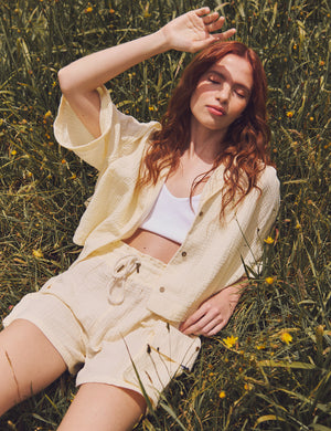 Camisa Cuello Sport manga corta Sun amarillo pastel Mujer